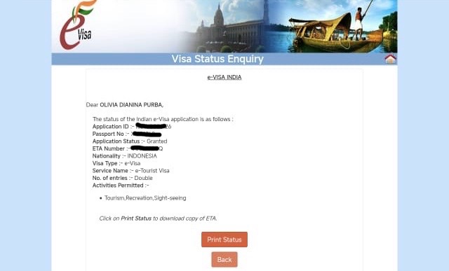 e-Visa yang sudah dicetak wajib dibawa saat perjalanan dan ditunjukkan kepada petugas imigrasi India saat kedatangan.